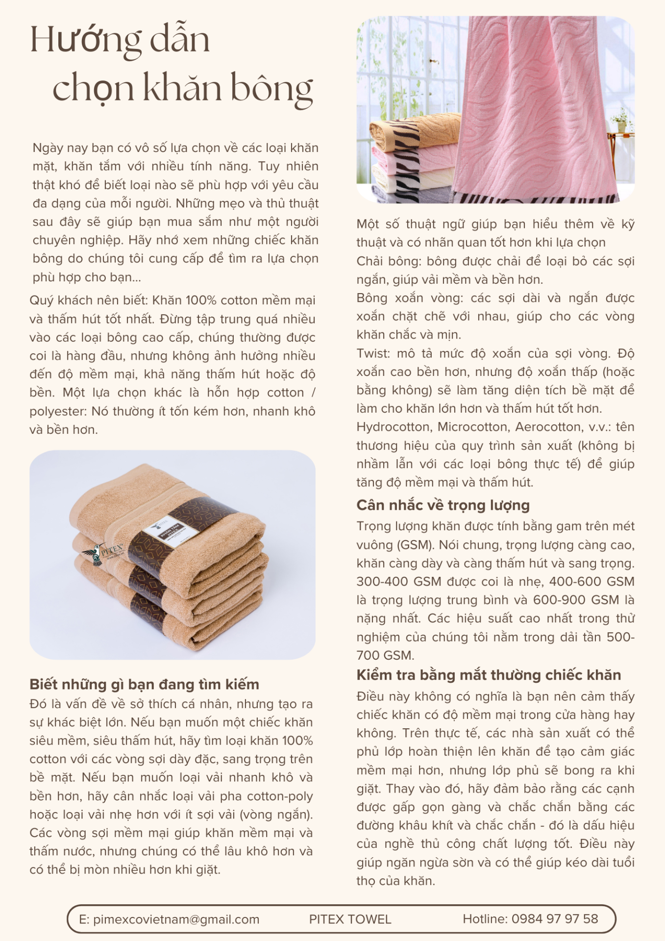 Ngày nay bạn có vô số lựa chọn về các loại khăn mặt, khăn tắm với nhiều tính năng. Tuy nhiên thật khó để biết loại nào sẽ phù hợp với yêu cầu đa dạng của mỗi người. Những mẹo và thủ thuật sau đây sẽ giúp bạn mua sắm như một người chuyên nghiệp. Hãy nhớ xem những chiếc khăn bông do chúng tôi cung cấp để tìm ra lựa chọn phù hợp cho bạn...